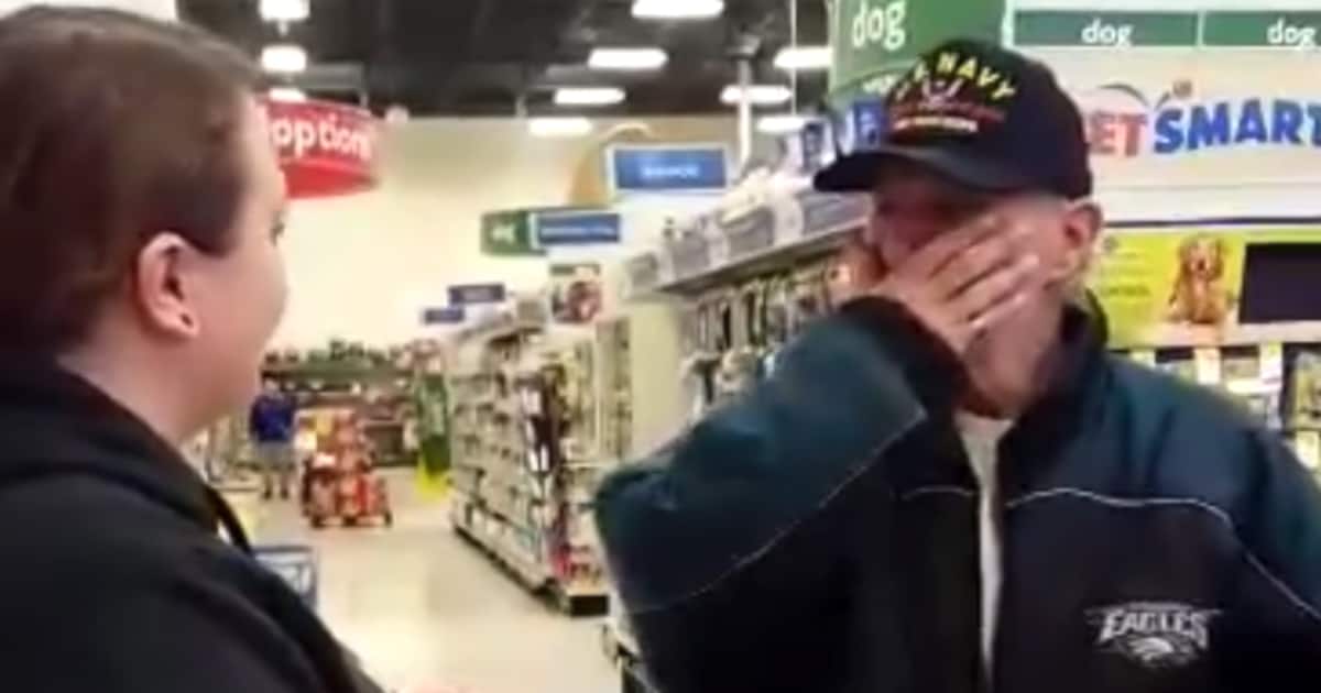 The shelter, which was based in the PetSmart store, learned about what happened and wanted to help James get his dogs back. Volunteers pitched in, and they collected enough to cover the fees. In the video below, you’ll see James Pack at the PetSmart with no idea of the surprise that was in store for him.