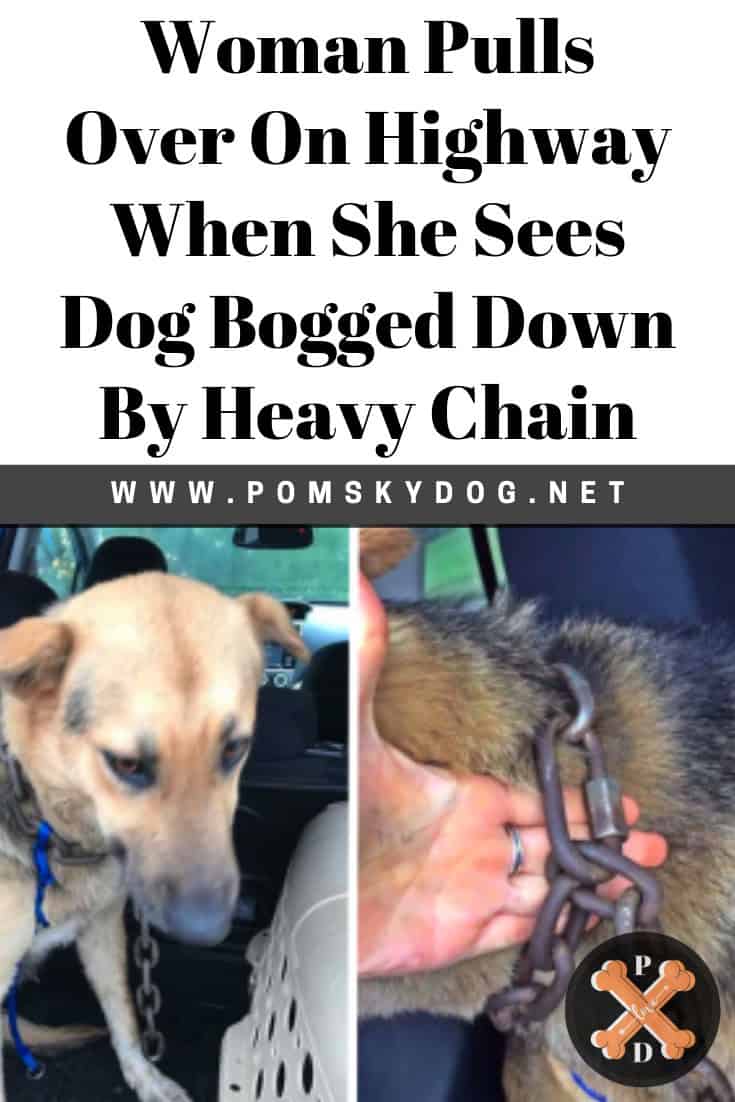 Woman Pulls Over On Highway When She Sees Dog Bogged Down By Heavy Chain