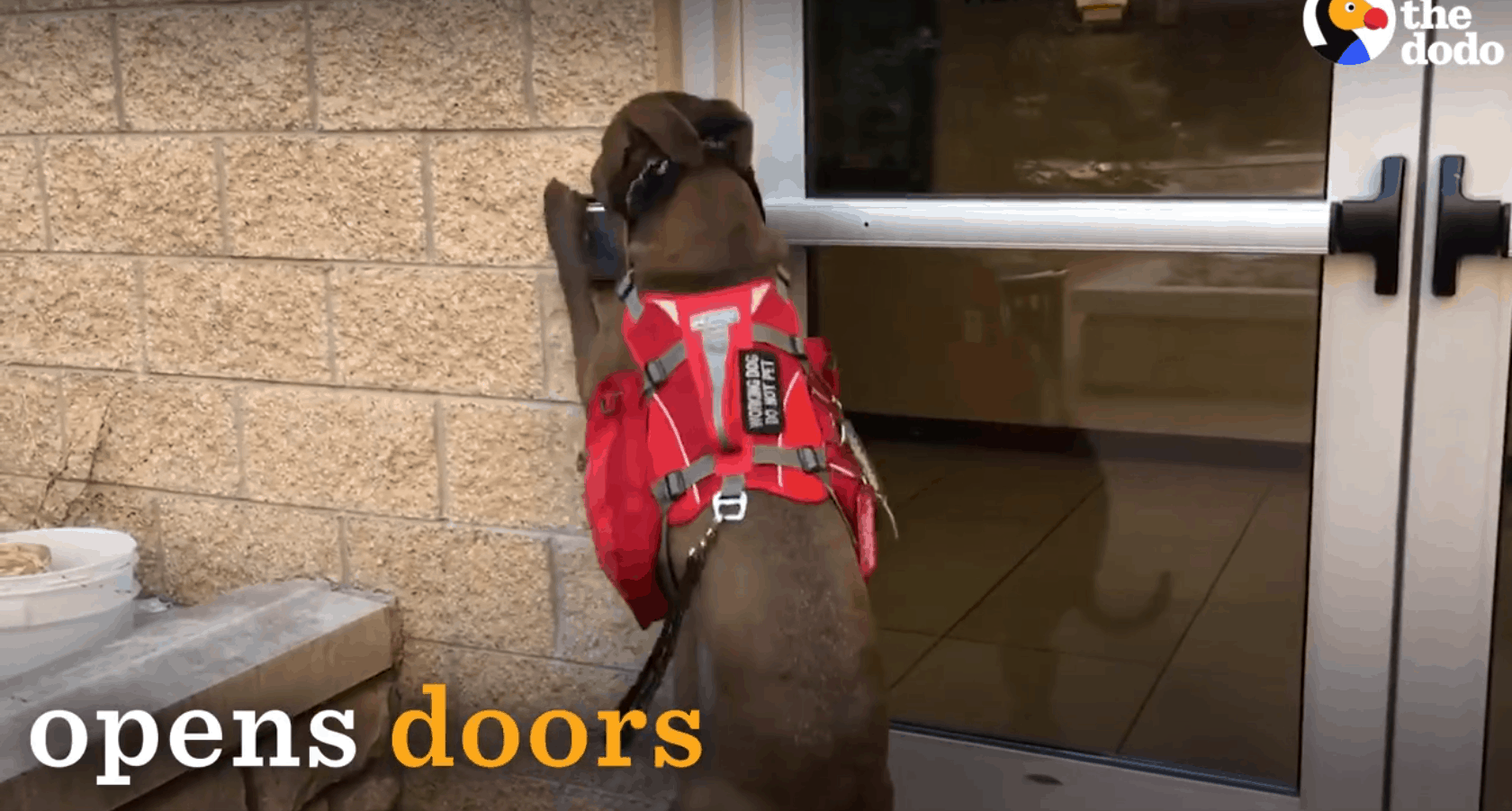 The dog applies deep pressure therapy and listens to mom’s heartbeat to make sure everything’s okay. Watch as the helpful pooch opens doors, helps with chores and even brings her the medicine.