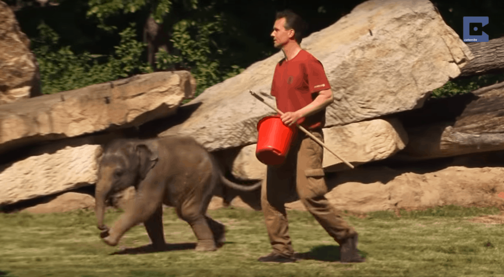 So that’s when a keeper steps in to help. The Prague Zoo employee is able to wake the young one and ease the mother’s mind. All is well! It’s amazing how human-like her concern for her baby is. Elephants are such smart, emotional creatures.