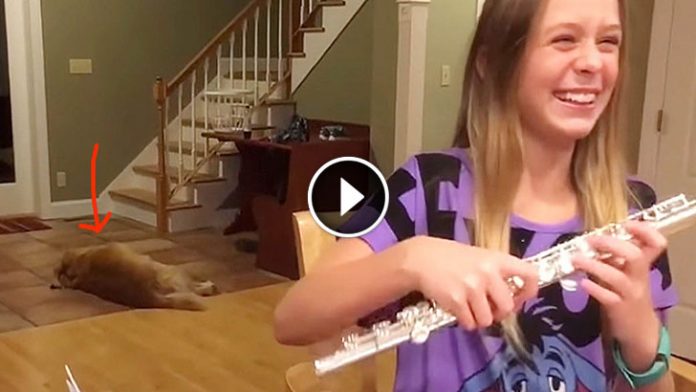 This dog either doesn’t appreciate musical talent or doesn’t like his nap being interrupted by his little human’s flute practice.